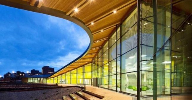 Эта школа представляет собой одно огромное помещение, посещаемое более чем тысячей учащихся. Учеба здесь организована в огромном стеклянном кубе. Открытое пространство разделено на отдельные участки секторами с удобными сиденьями. Такой дизайн поощряет гибкость ума и работу воображения.