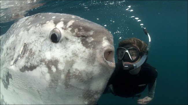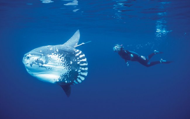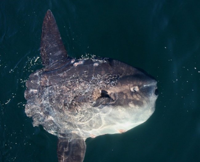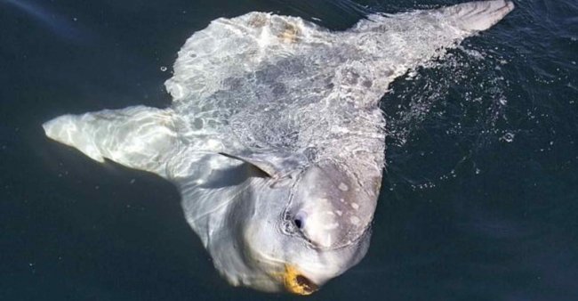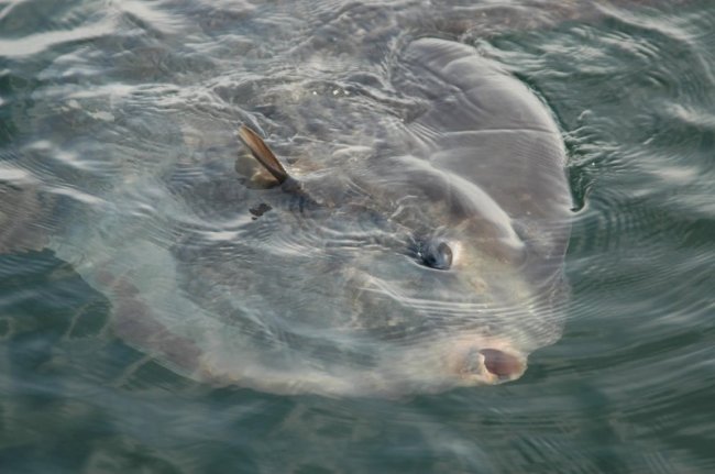 5. Часто можно увидеть луну-рыбу, лежащую на боку на поверхности воды.