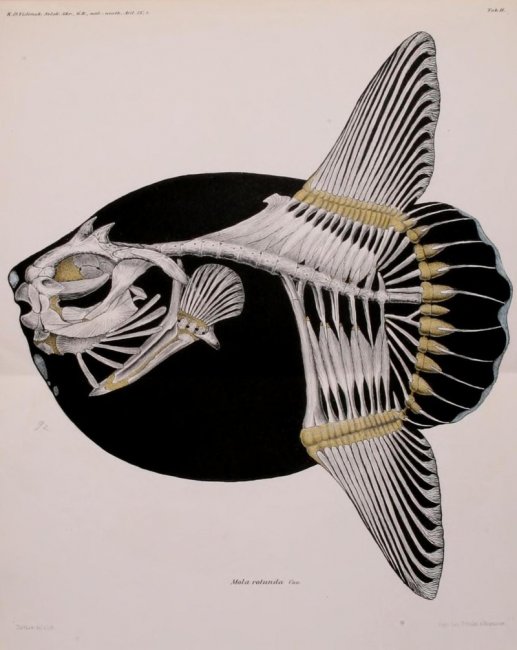 4. У луны-рыбы позвонков меньше, чем у других костистых рыб их всего 16, тазовый пояс полностью редуцирован, хвостовой плавник отсутствует