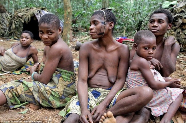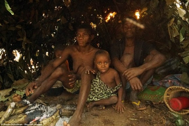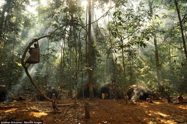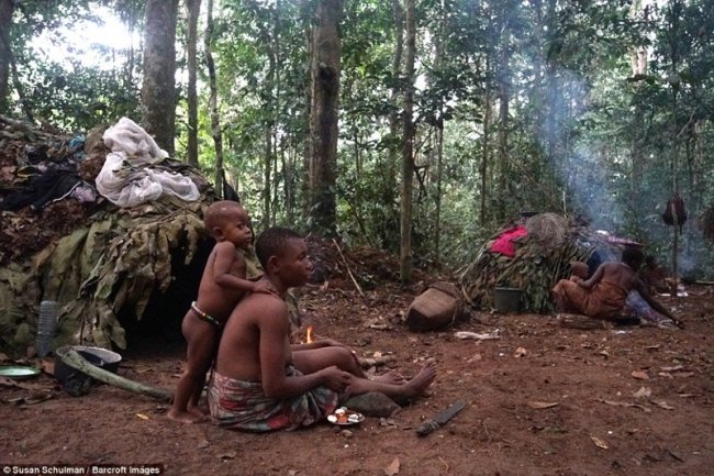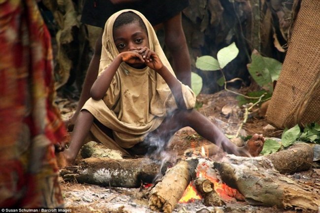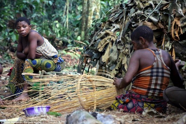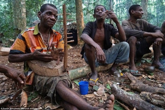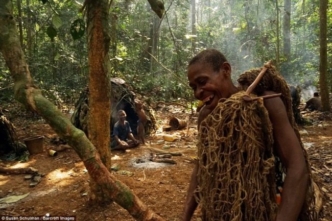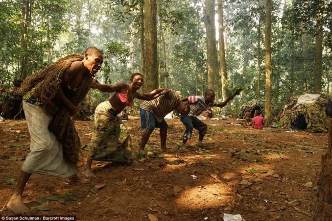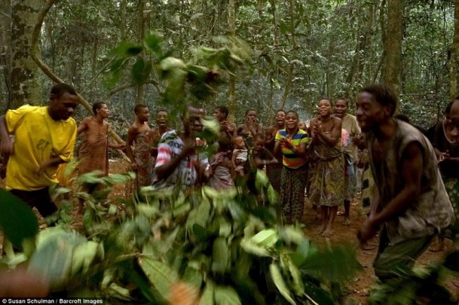 Пигмеи отличаются от представителей других африканских племен своей миниатюрность — их рост редко превышает 140 см. На фотографии выше члены племени проводят традиционную охотничью церемонию.