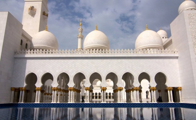 Это самая большая мечеть в Объединенных Арабских Эмиратах и восьмая по величине мечеть в мире. Здание было построено в период между 1996 и 2007 годами и до сих пор является одним из основных мест паломничества мусульман со всей планеты.