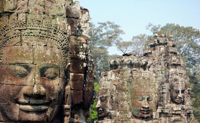 А вот памятник уже кхмерской культуры. Храм Байон построили в конце 12-го века. Его отличительная особенность — массивные каменные скульптуры, расположенные на многочисленных башнях здания.