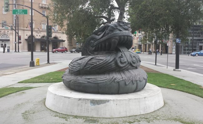 Заказ на статую Роберт Грэм получил от муниципалитета Сан-Хосе: город нуждался в монументе, который мог бы символизировать уважение к традиционным верованиям индейцев инка и майа, потомки которых жили когда-то на этих землях. Скульптор запросил за свою работу грандиозные полмиллиона долларов, но вот результатом не был доволен никто. Мало того, что статуя грозного бога выглядит так, будто ее «изваяла» бездомная собака — местные жители, уже после установки монумента, возмутились выбором божества: Кетцаткоатль известен как вырывающий сердца демон.