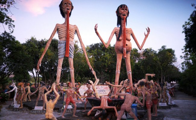 Буддисты не стесняются описывать свой ад во всей красе — да с такими подробностями, которым мог бы позавидовать и старина Брейгель-старший. Тематический парк наглядно показывает, что случится с решившими свернуть на темную сторону силы. Говорят, местные тайцы очень любят приводить сюда маленьких детей — в качестве воспитательной меры.