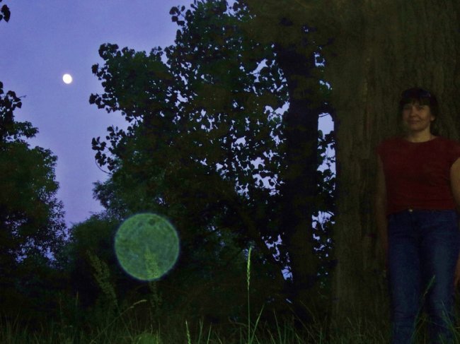 Автор этих снимков, фотограф Юлия Баранова, рассказывала, что, заметив орбы на экране камеры, она посмотрела поверх нее и увидела что-то странное, висящее на березе. Женщина не испугалась и решила потрогать загадочное нечто.