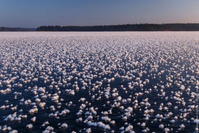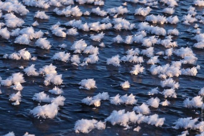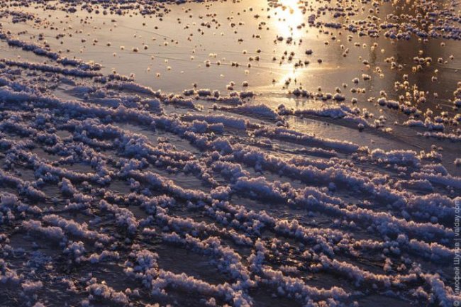 Фантастические ледяные кристаллы покрыли практически всю поверхность озера.