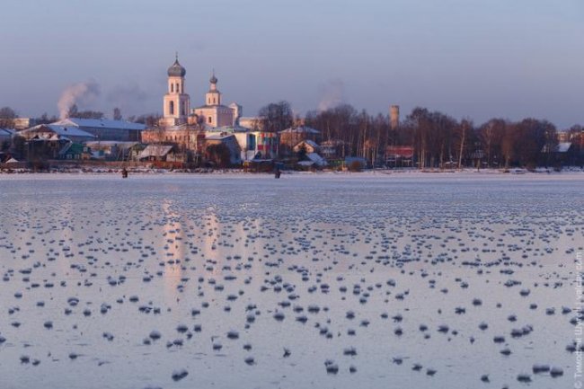 На Валдайском озере, что находится на территории Валдайского национального парка в Новгородской области, засняли очень редкое и при этом красивое зимнее явление.