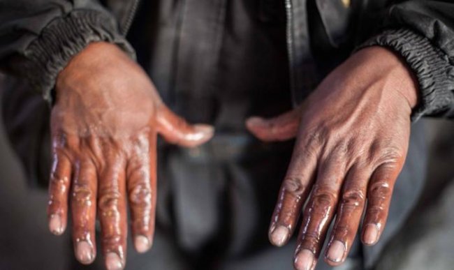 Озеро, которое вы видите здесь на заднем плане, также сильно загрязнено ртутью и цианидом. Вся эта вода используется жителями города.