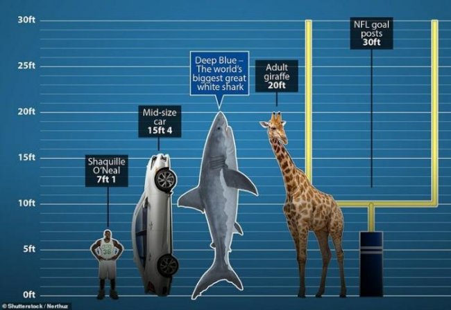 Размеры для сравнения — Шакил О’Нил, автомобиль, Deep Blue, самый высокий жираф и ворота в американском футболе.