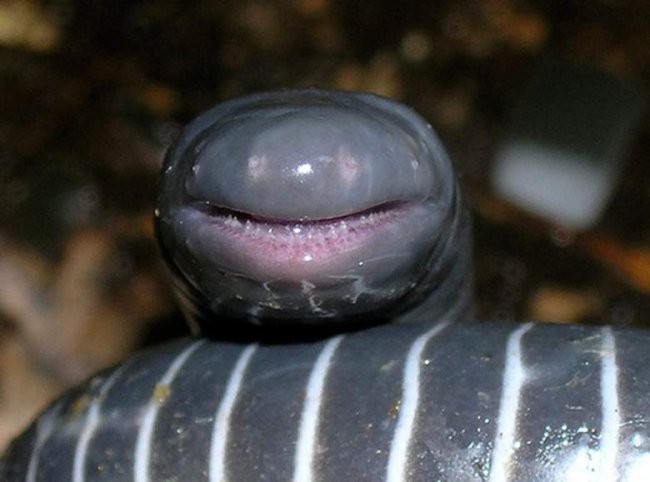 Червяги или цецилии похожи то ли на змей без чешуи, то ли на дождевых червей. Встречаются они в Африке, Азии и Америке и на самом деле являются амфибиями. Причем куда более примитивными (а значит древними), чем лягушки и саламандры.