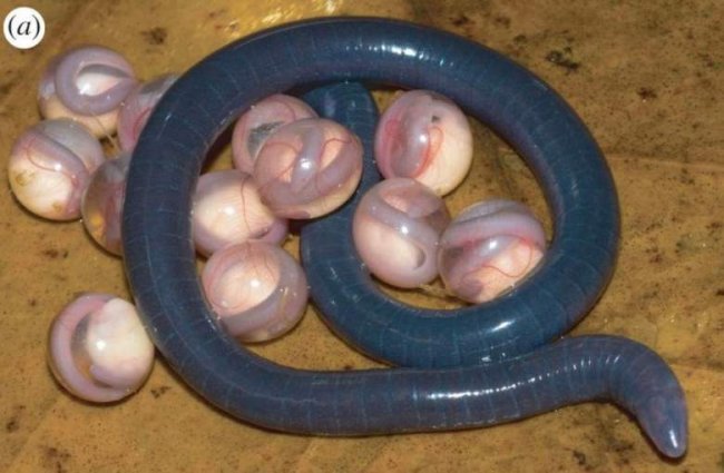 Червяги минуют личиночную стадию и появляются на свет сразу полностью сформированными, как детеныши змей.
