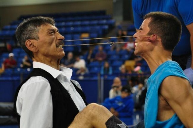 Особое отношение у эскимосов к ушам. Они проводят соревнования по перетягиванию нити во время ежегодных Всемирных эскимосо-индейских олимпийских игр. Участникам, сидящим друг против друга, надевают на уши петлю из вощеной нити. По сигналу они начинают тянуть нить назад. Проигрывает тот, у кого с уха слетает петля, или тот, кто сдается. Из-за невыносимой боли борьба продолжается несколько секунд. Конечно, бывает и так, что все заканчивается из-за оторвавшегося уха. Другой вариант соревнований – это поднятие тяжестей ушами. В них побеждает тот, кто быстрее всех пройдет 600 метров с 5-килограммовой сережкой на каждом ухе.