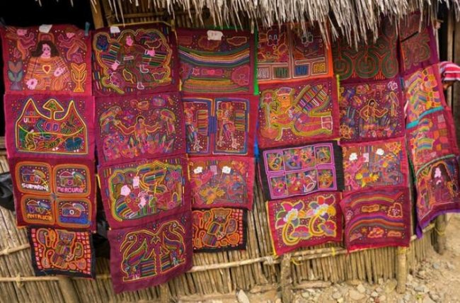 Если вы прилетите в Панама-Сити, то первое, что увидите на улицах города, — красивых женщин в алых платках, расшитых платьях и блузках, с браслетами на руках и ногах, важно передвигающихся по улицам. В руках у них корзинки с вышитыми аппликациями «мола» — гордостью каждого куна. Женщины приезжают на несколько часов с островов архипелага Сан-Блас, чтобы продать текстиль, а вечером возвращаются домой.