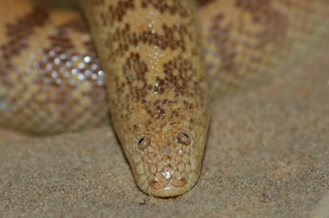 Никогда не знаешь на что наткнешься в Интернете. Например, змея аравийская песочная боа — безвредный вид, обитающий на Аравийском полуострове. Привлекает внимание своими необычными глазками.