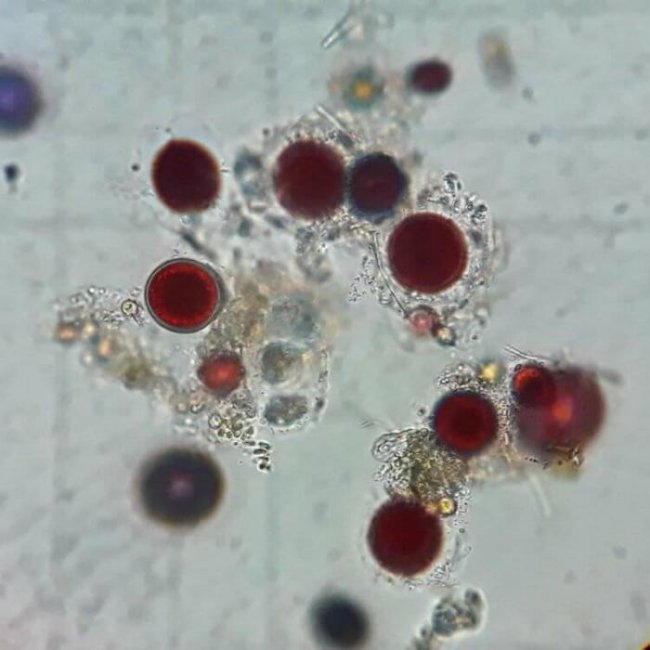 Так выглядят снежные хламидомонады (Chlamydomonas nivalis) под микроскопом