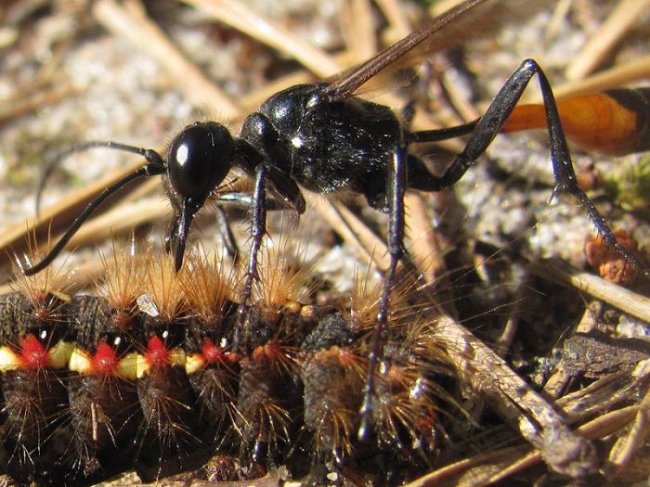 Оса-наездник и гусеница, откладывающая личинки в хозяина
