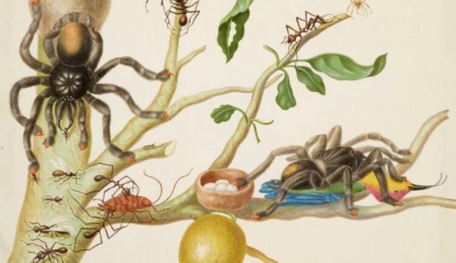 Это прозвучит нелогично, но пауки-птицееды очень редко нападают на птиц. Как правило, они питаются живущими в лесах насекомыми, червями, лягушками и мелкими грызунами. Они ловят их, выпрыгивая из засады — паутина используется только для строительства гнезд. Конечно, если паук найдет на земле птичье гнездо, он обязательно полакомится птенцами или даже взрослыми особями. Но название «птицеед» этим созданиям было дано только из-за того, что в 1705 году немецкая художница Мария Мериан (Maria Merian) изобразила на своей картинке паука, поедающего колибри.