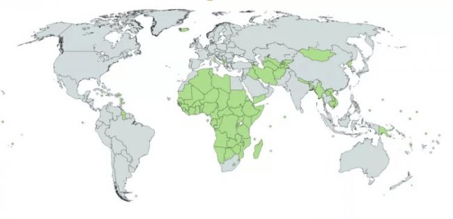 Зелёным на карте отмечены страны, в которых отсутствует Макдональдс