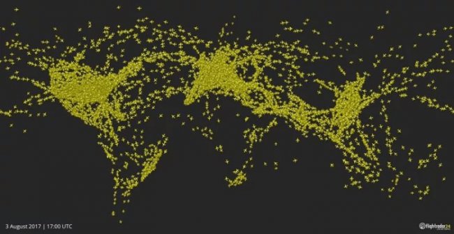 Аналогично поисковым запросам в Гугл, можно посмотреть на рисунок из самолётных рейсов. Получается интересная независимая статистика. Тёмные места на карте — места пониженной активности и территория боевых дейсвий. Поэтому, если сомневаетесь в том, ведутся ли боевые действия на той или иной территории, посмотрите на рисунок из рейсов — он врать не будет.