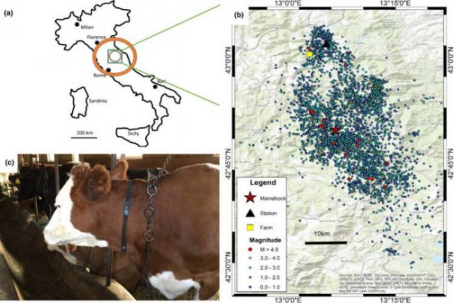 До сих пор недоказанным оставалась и реакция животных на грядущие катастрофы. Но недавно ученые из Института изучения поведения животных Общества Макса Планка провели исследование, результаты которого были опубликованы в научном журнале Ethology. Они предположили, что реакцией на скорое землетрясение обладают коровы, овцы и собаки, поэтому снабдили их датчиками для слежения за поведением. С октября 2016 по апрель 2017 года в районе итальянской деревни Каприлья, где жили испытуемые животные, произошло более 18 тысяч подземных толчков.