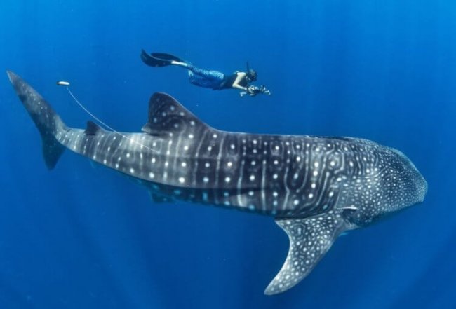 Китовые акулы не представляют для людей особой опасности, поэтому некоторые исследователи не боятся близко к ним подплывать