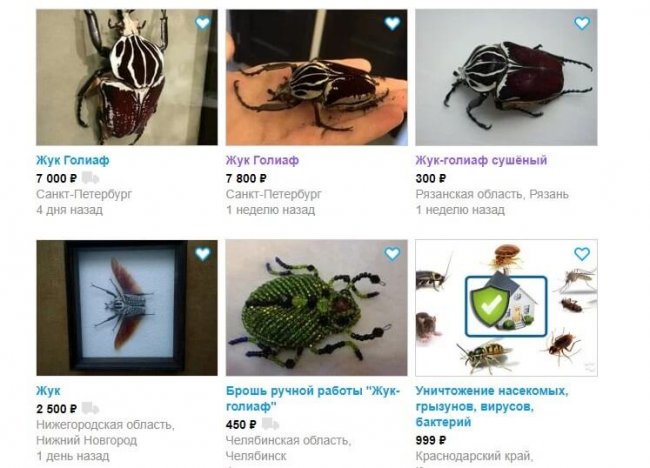 Это удивительно, но жуки-голиафы нередко содержатся людьми в качестве домашних животных. Их разведение не требует особых условий — им необходимые всего лишь теплые и влажные условия, а также гнилая древесина. Никаких кормов покупать не надо, потому что жуки с аппетитом поедают гнилые фрукты и даже могут полакомиться старым вареньем. Единственный минус заключается в цене ужасных на вид личинок, которые могут стоить от 500 до 200 рублей. Купить жука-голиафа вполне можно через площадки типа Avito, причем не только живыми, но и сушеными — видимо, они пользуются спросом и у коллекционеров.