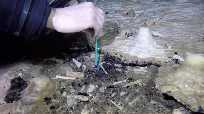 Дайверы, обследовали затопленную систему пещер Сагитарио и обнаружили ранее неизвестный проход, который вывел драйверов к впечатляющему массиву горных артефактов из последнего ледникового периода.