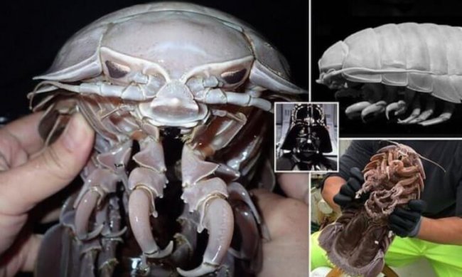 Заходя в ванную комнату, некоторые жители первых этажей многоквартирных домов видят перед собой разбегающихся в разные стороны мокриц (Oniscidea). Эти ракообразные существа с усиками и семи парами ног обожают влагу, поэтому и поселяются в человеческих жилищах и наводят страх своим не самым приятным видом. Но знаете ли вы, что на большой глубине морей и океанов обитают их гигантские копии — изоподы? Они питаются опустившимися на дно останками рыб и морских млекопитающих, а с момента их появления на нашей планете прошли миллионы лет. Своим видом они напоминают инопланетян и вызывают у ученых неподдельный интерес. Недавно, на 1000-метровой глубине Зондского пролива (Индонезия), был обнаружен новый вид изопод, которому было дано название Bathynomus raksasa. Своим внешнем видом он напоминает шлем Дарта Вейдера из вымышленной вселенной «Звездных войн».