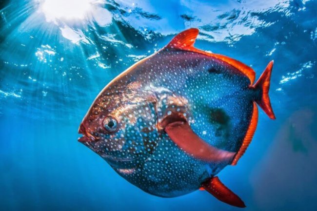 Но стойкостью к холодным водам обладают далеко не все рыбы. Одна из них — единственная в своем роде теплокровная рыба красноперый опах (Lampris guttatus). В начале статьи я упомянул, что все рыбы являются холоднокровными и температура их тела напрямую зависит от температуры воды. Так вот, красноперый опах — исключение из этого правила. В 2015 году американским ученым удалось выяснить, что температура их тела обычно на 5 градусов выше температуры воды. А все потому, что эта рыба непрерывно подогревает себя, активно двигая своими плавниками. А сохранению тепла внутри тела способствует их толстый жировой слой.