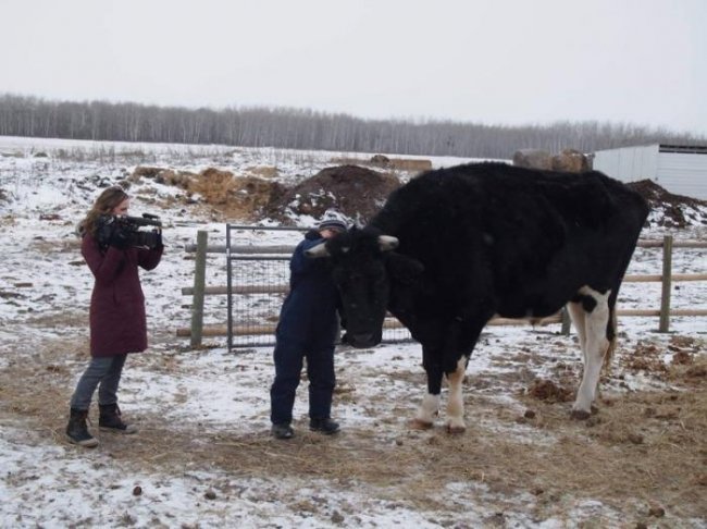 Оказалось, что Дозер выше! У заокеанского быка рост 6 футов и 4 дюйма или почти 194 см, а у канадского 6 футов и 5 дюймов, что дает 195,5 см. Разница невелика, но она есть, и не так важно, что до мирового рекорда, который более 2 м, им обоим все равно далеко. Слава на целую неделю и повод для десятков визитов журналистов обеспечены!