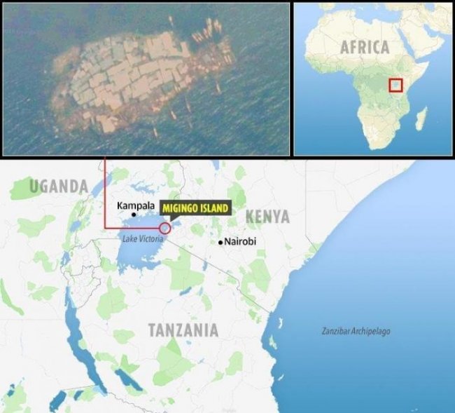 Мигинго расположен в акватории озера Виктория на границе Уганды и Кении
