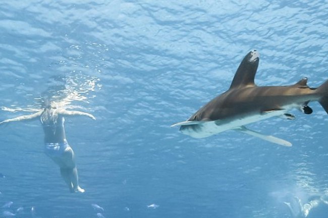 Завидев хищника, направляющегося к тебе с явно преступными намерениями, постарайся успокоиться. Панические движения, излишние бултыхания в воде не только не помогут тебе, но и раззадорят любопытство акулы. Все движения должны быть в меру медленными, но решительными: представь, что ты оказался один на один с пятеркой парней из подворотни — спасти тебя может только уверенность в себе.