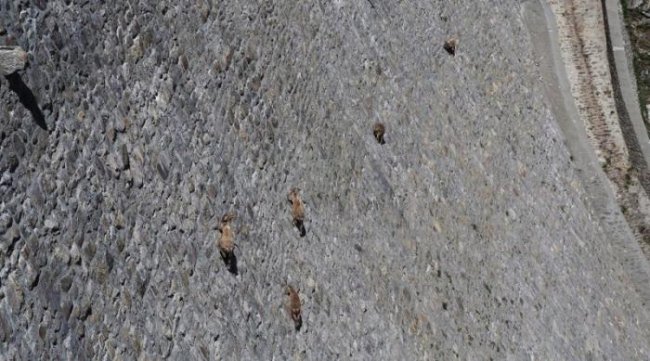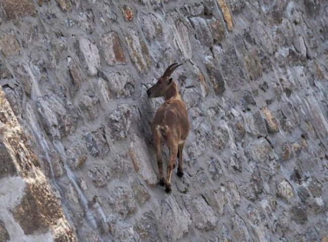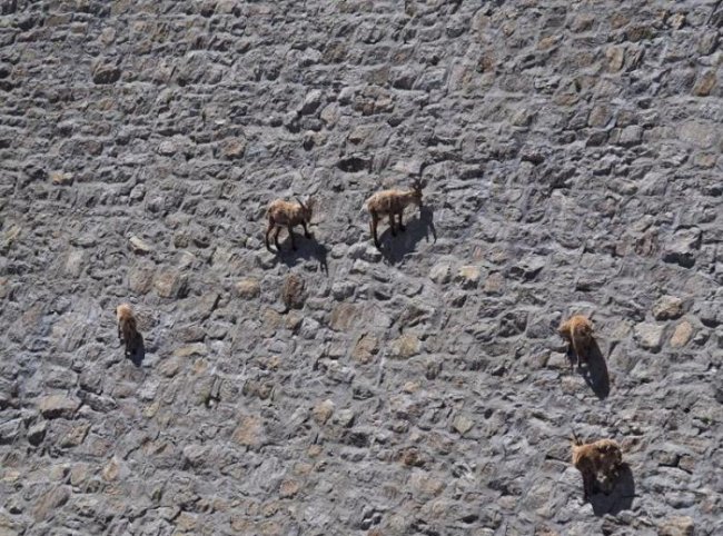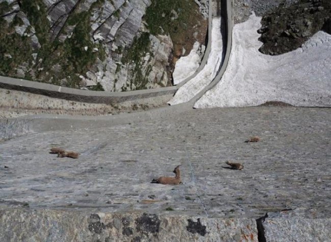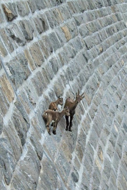 Дамба возвышается над уровнем моря на два километра, а её собственная высота составляет 49 метров. Однако Федерику впечатлило не это. Оказавшись в Пьемонте, женщина заметила козлов, которые игнорируют градус наклона стены и без вспомогательных средств забираются на невероятные высоты.