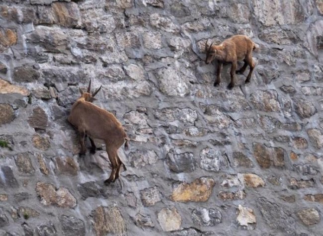 Жительница Италии Федерика Грасси посетила Пьемонт и увидела, как по отвесной стене местной плотины гуляют альпийские козы. По замечанию женщины, градус наклона дамбы составляет почти 90 градусов, а высота — 49 метров, так что козы уже успели прославиться как злостные нарушители гравитации. Но у копытных есть очень веский повод для экстремальных прогулок.