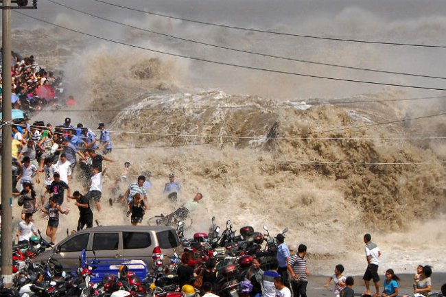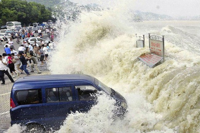 Особенности ландшафта, течения и приливы в некоторых местах Земли создают приливные волны гигантских размеров. Самая большая, признанная наукой феноменальной приливная волна проходит на китайской реке Цяньтан. Миллионы кубометров воды в мгновение ока обрушиваются против течения, формируя завораживающее, но довольно опасное зрелище.