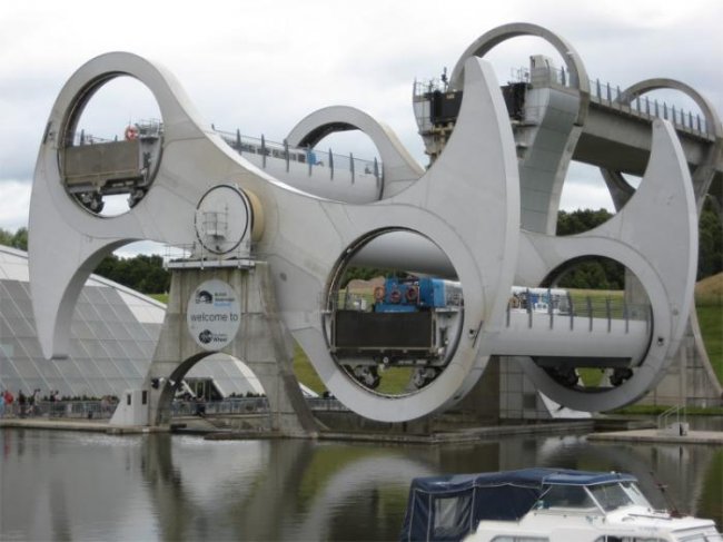 Перепад высоты между каналами Юнион и Форд-Клайд в Шотландии составляет порядка 24 метров. Изначально они были соединены одиннадцатью шлюзами, но когда канал решили закрыть, в 30х годах их засыпали. Во время реконструкции в конце 20 века вместо прежней громоздкой инженерной системы канал было предложено оборудовать шлюзовым судоподъемником. Время оборота колеса-лифта — около 15 минут. Выбрав экскурсионный тур по каналам, на работу единственного в мире вращающегося гидролифта туристы могут посмотреть изнутри.