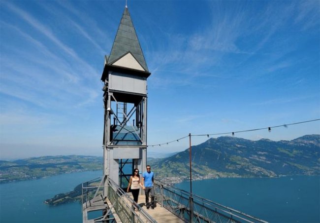 Во внутреннюю часть самого большого в мире цилиндрического аквариума с соленой водой, расположенного в холле отеля «Radisson Blu» в Берлине, инженеры спрятали прозрачный лифт. Во время подъема на нем посетителям становится доступна 360-градусная панорама подводного царства, представленного 1500 рыбами 97 видов.
