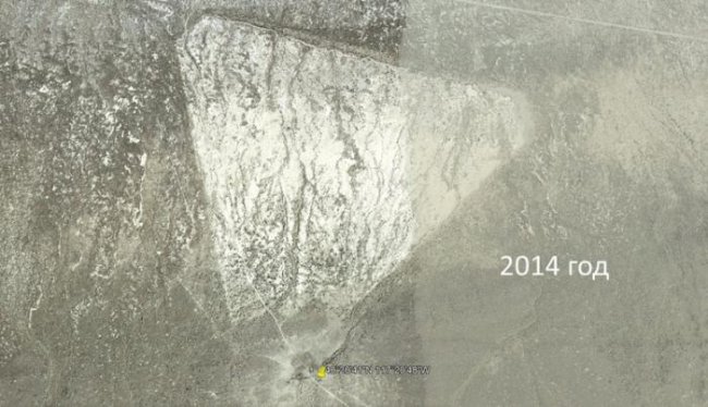 Загадочный треугольник в невадской пустыне случайно обнаружил житель местного городка Батл Маунтин. Он хотел найти возле знаменитой Зоны 51, расположенной там же в Неваде, следы крушения НЛО и неожиданно наткнулся на странный огромный треугольник.