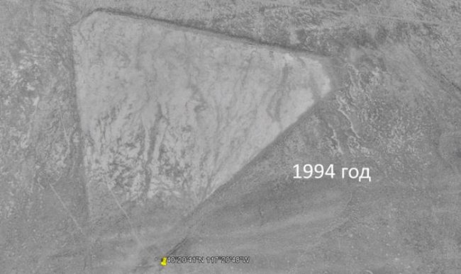 Но светлый треугольник присутствует в этом месте еще на самом первом снимке от 1994 года. При этом никаких построек в 1994 году в этой области еще нет.