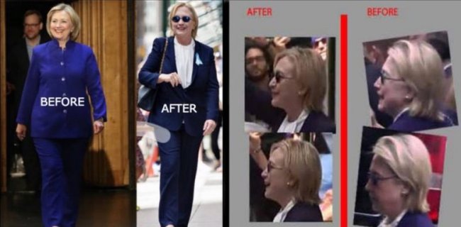 Ряд юзеров посчитал, что эта Клинтон была ненастоящей. Конспирологи, в частности, обращают внимание на ее нос: якобы у двойника его кончик опущен, а у Хиллари он вздернутый. Мочки ушей у них тоже разные, указательный палец у «фальшивки» короче и ноги у последней слишком худые.