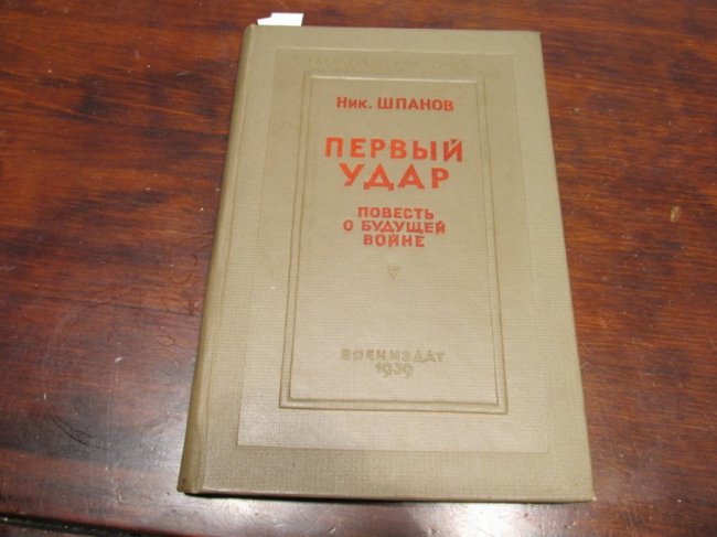 Николай Шпанов. «Первый удар Повесть о будущей войне» . Государственное военное издательство наркомата обороны Союза ССР. Серия «Библиотека командира» Москва. 1939 год.