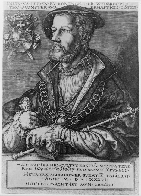 Его стараниями, в частности, были напечатаны монеты с предсказаниями грядущего Армагеддона, жители города жили в постоянном страхе от очередных выходок религиозных фанатиков. Сам Иоанн Лейденский роскошествовал, взяв себе в жены более полутора десятка женщин, как и подобает уважающему себя библейскому пророку.