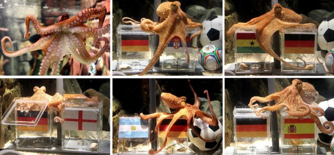 Немецкий осьминог Пауль смог предсказать исход всех матчей чемпионата мира по футболу, в том числе и финального. Отсюда вопрос: