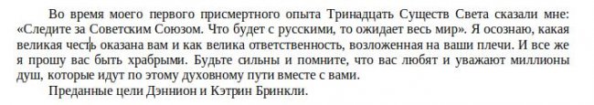 Следует отметить, что среди 117 предсказаний пророка новейшего времени есть не только отрицательные прогнозы о войнах и авариях, взрывах и катастрофах. В некоторых из них описано позитивное будущее земли. В частности, Бринкли в своей книге указал на огромную миссию России для будущего человечества.
