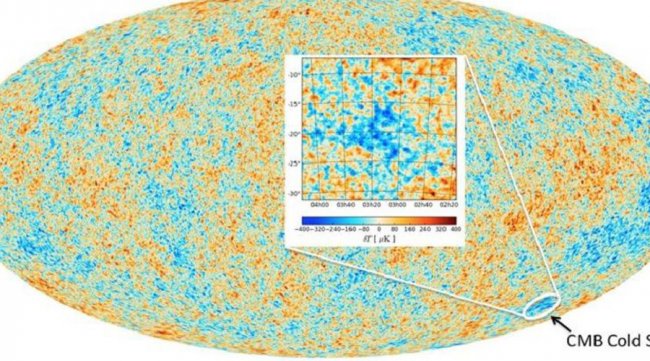 Диаметр странного пятна (его температура на 0,00015 градусов Цельсия ниже, чем температура космоса) достигает невероятных 1.8 миллиарда световых лет.