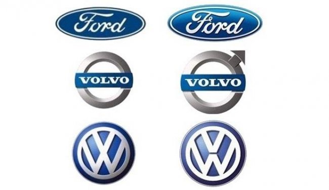 Ниже представлены логотипы трех известных марок авто в двух вариантах. Многие люди готовы поклясться, что логотипы справа неправильны. Якобы у «Форда» никогда не было этой закорючки у буквы «F», у «Вольво» – стрелки наверху, а у «Фольксвагена» – разделения между литерами «V» и «W». Даже владельцы таких машин допускают подобную ошибку. Несмотря на это, подлинные логотипы изображены именно справа, а слева представлены их видоизменные варианты, которые многие из нас почему-то считают правильными.