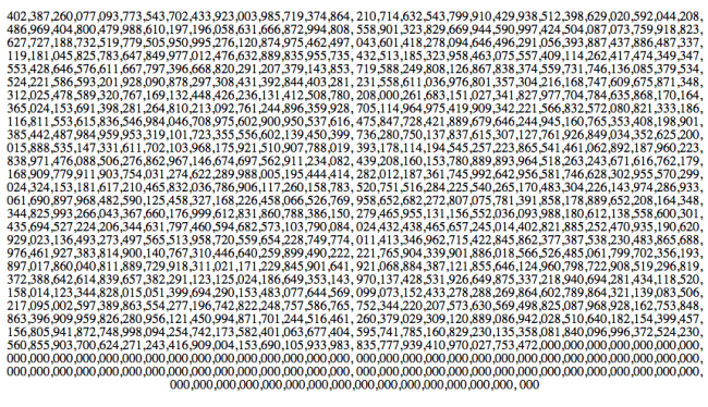 В каждой вселенной 10^90 частиц, и нам нужно, чтобы у каждой из них была та же история взаимодействия на протяжении 13,8 миллиарда лет, что и у нашей вселенной, чтобы получить идентичную вселенную. Для вселенной с 10^90 частиц с 10^10^50 возможных вариантов такой вселенной нужно, чтобы каждая эта частица взаимодействовала с другой на протяжении 13,8 миллиарда лет. Число, которое вы видите выше, это просто 1000! (или (10^3)!), факториал 1000, описывающий число возможных перестановок 1000 разных частиц в любой момент времени. (10^3)! больше, чем (10^1000), что-то около 10^2477.