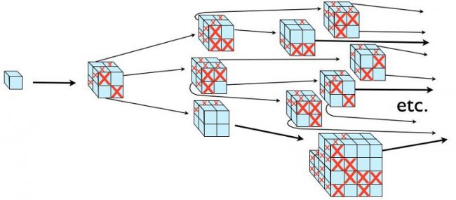 Другими словами, число возможных вариантов взаимодействия частиц в любой Вселенной возрастает до бесконечности намного быстрее, чем растет число возможных Вселенных вследствие инфляции.