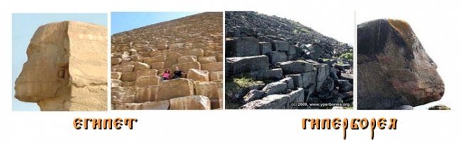 Оказалось, что вдвое раньше, чем в Египте (возраст гиперборейских пирамид составляет не менее 9000 лет), на гиперборейской земле уже возводились пирамиды, с использованием тех же «таинственных» технологий. Лежит и внимательно вглядывается в небо здесь и Северный Сфинкс.