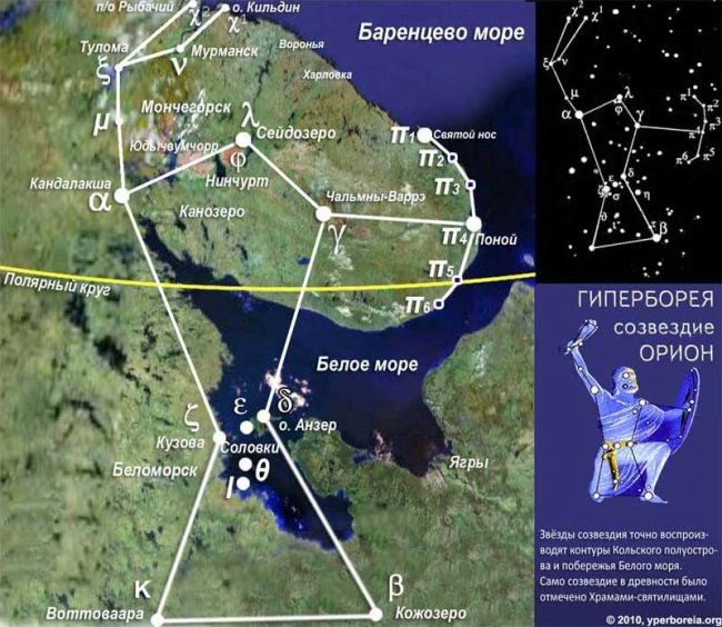 Из того же древнего Египетского источника известно, что местонахождение этой райской страны с Храмом Богов можно найти по земной проекции созвездия «Орион». Профессорами А.П. Смирновым и И.В. Прохорцевым была предложена современная физическая модель Принципа Порядка, давшая ключ к пониманию гиперборейской сакральной географии, символики и планировки храмов богов, установлению месторасположения острова сказочного русского гиперборейского рая. Теперь это географческий факт, который не вызывает сомнения Русского географического общества: